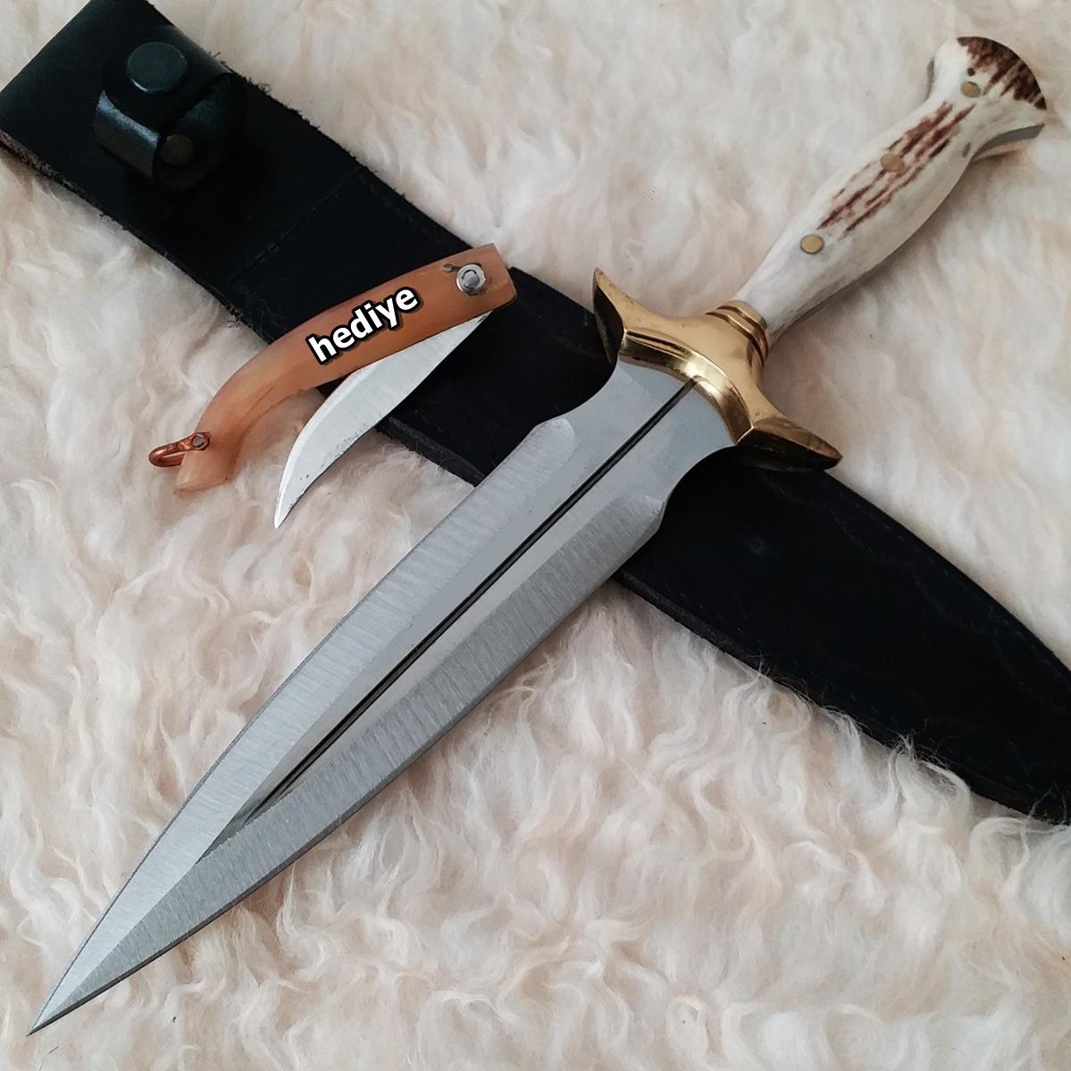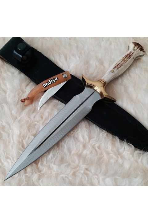 Geyik Boynuzu Kabzeli -Çift Ağızlı Uzun Kama